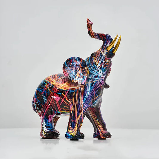 Abstrakt flerfarvet elefantstatue - et majestætisk kunstværk til boligindretning