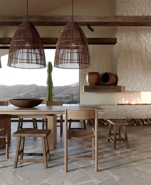 Wabi-sabi stil kreativ pendel i rattan i træ til køkkener