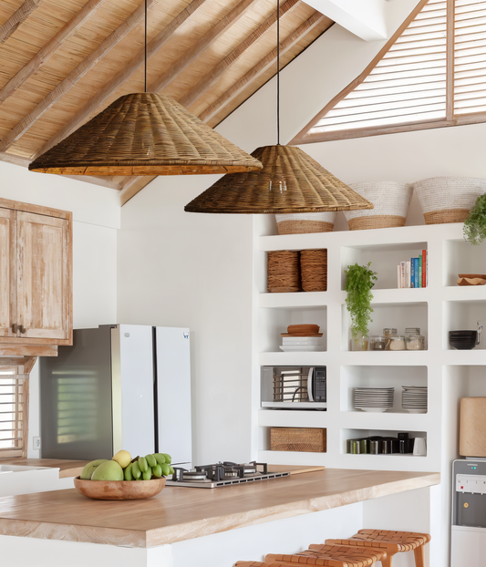 Ecolush loftslampe - håndlavet rattan pendel - rustik boho-lampe