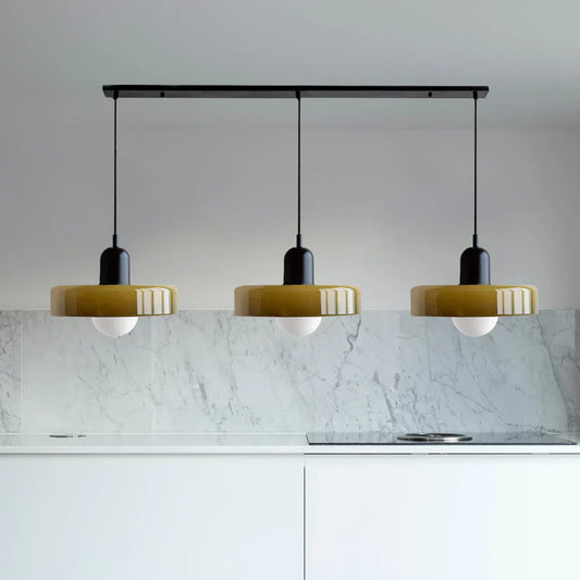 Moderne retro hængelampe i farvet glas