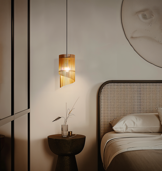 Spirawood pendellampe - kunstnerisk cylindrisk træarmatur