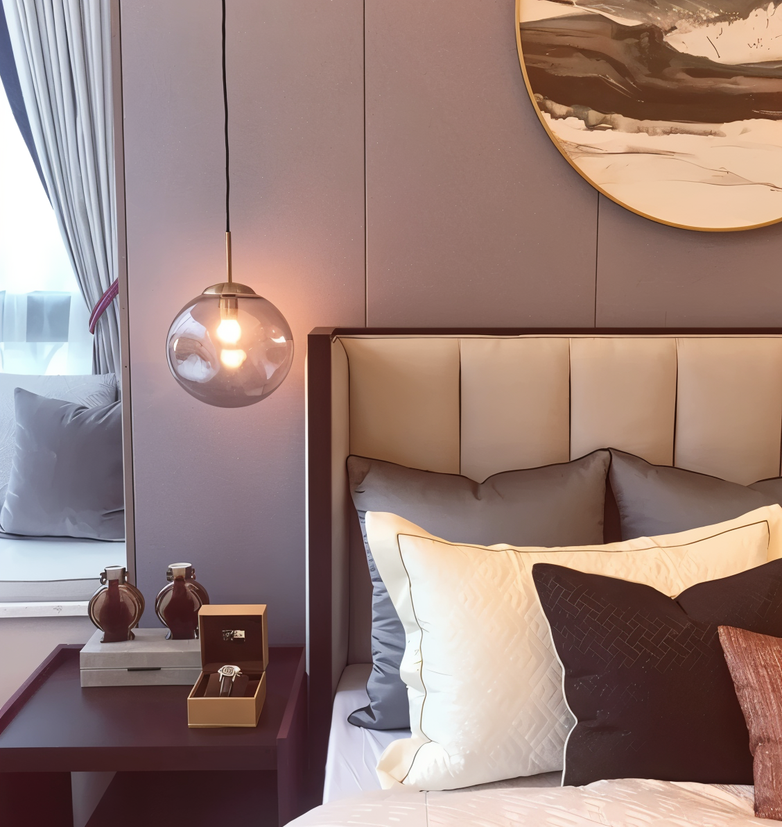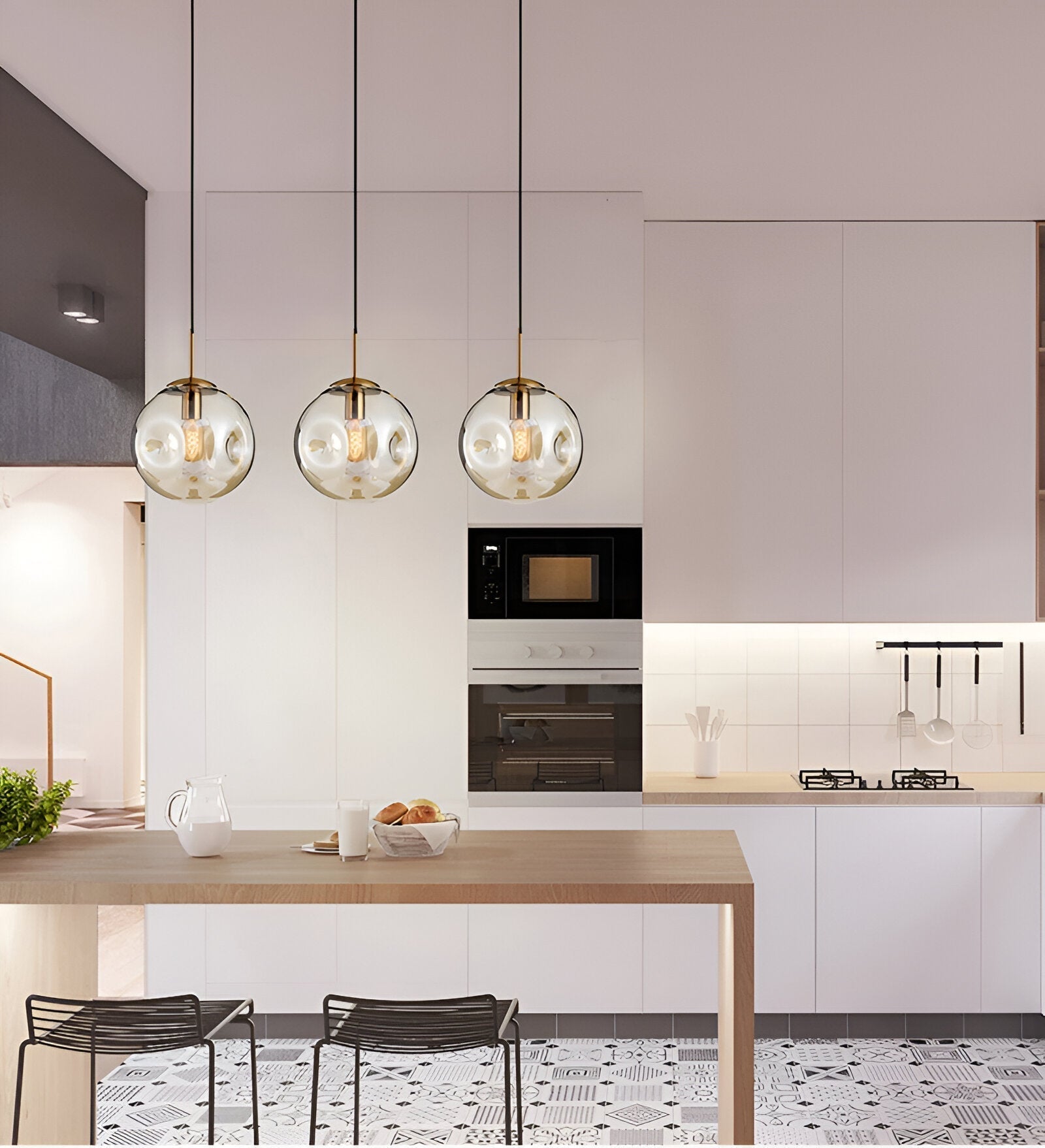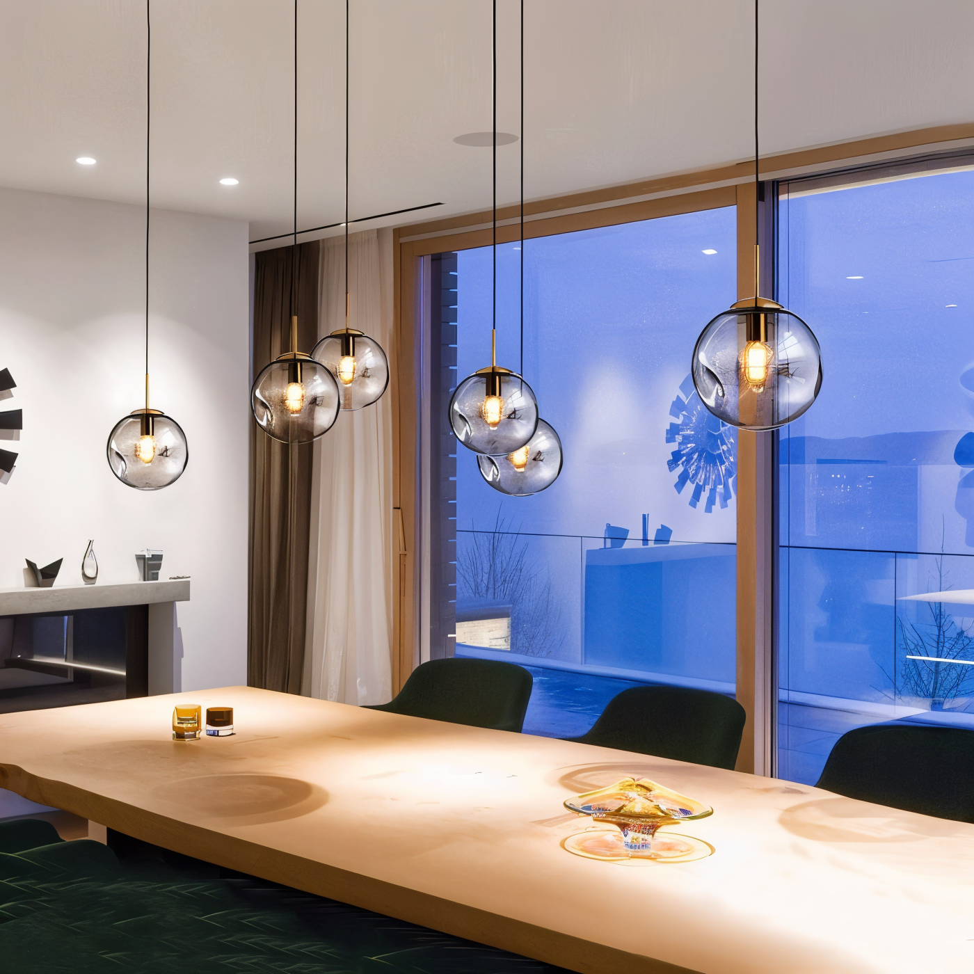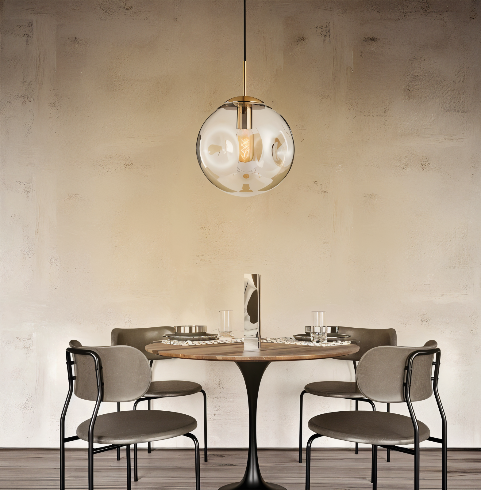 ChroDent-pendlen har et elegant rundt design lavet af champagnegråt glas. Med sit vintage-look og subtile wabi-sabi-æstetik tilføjer denne LED-lampe en sofistikeret og munter atmosfære til ethvert interiør.