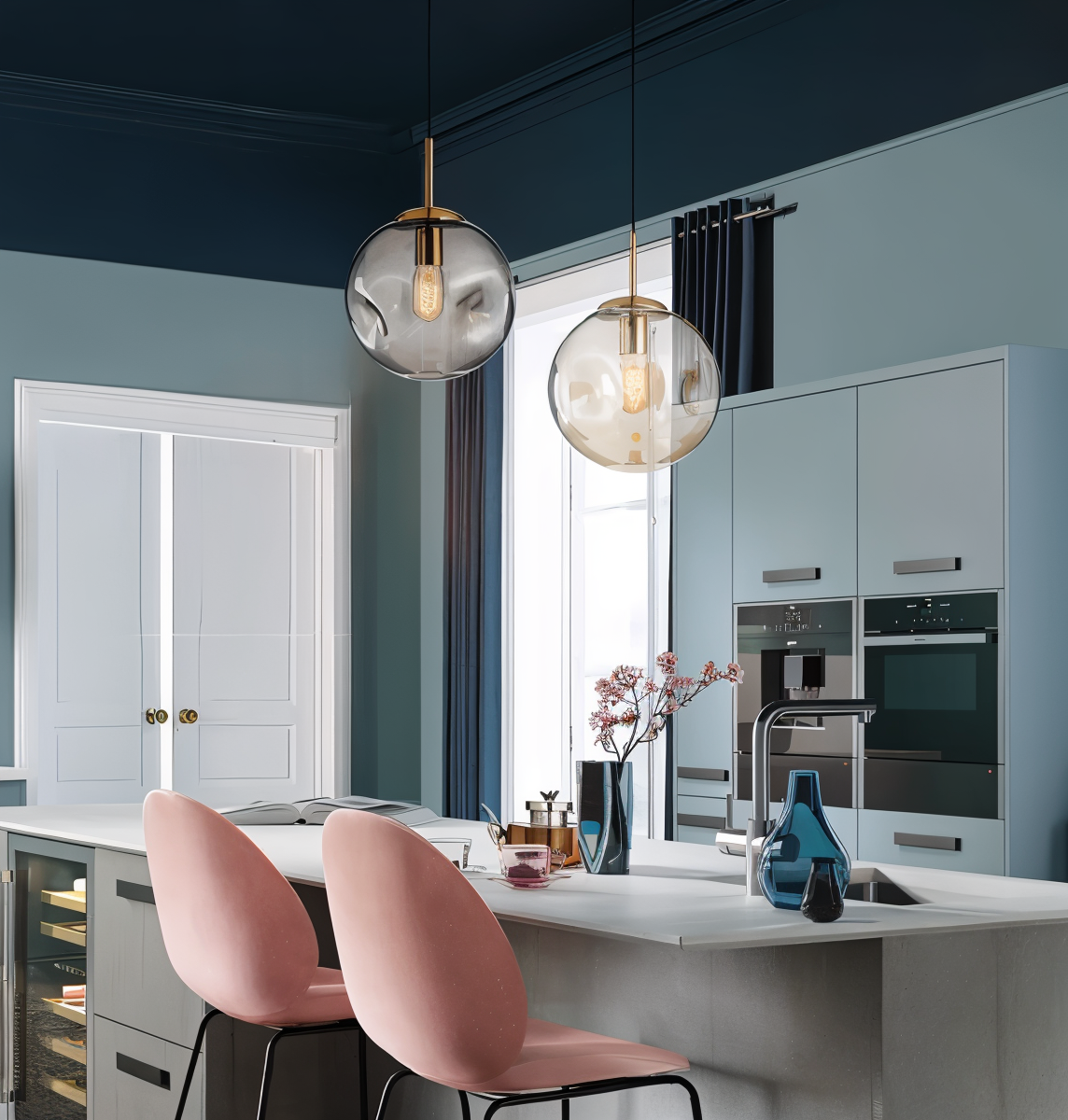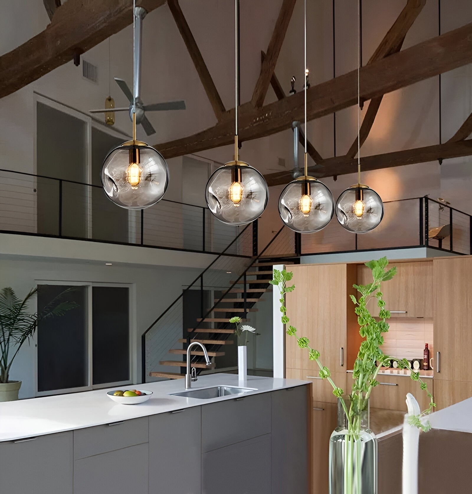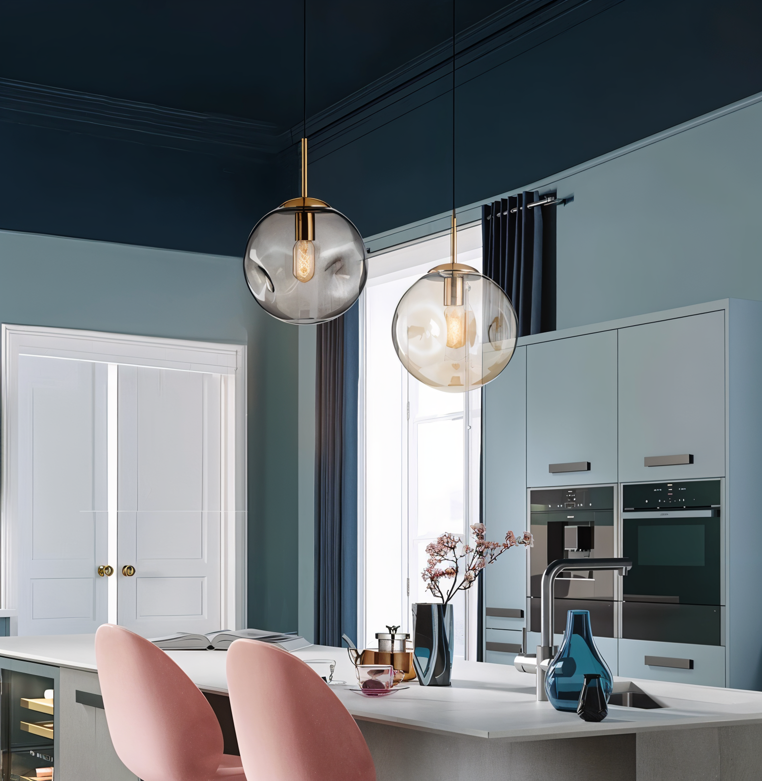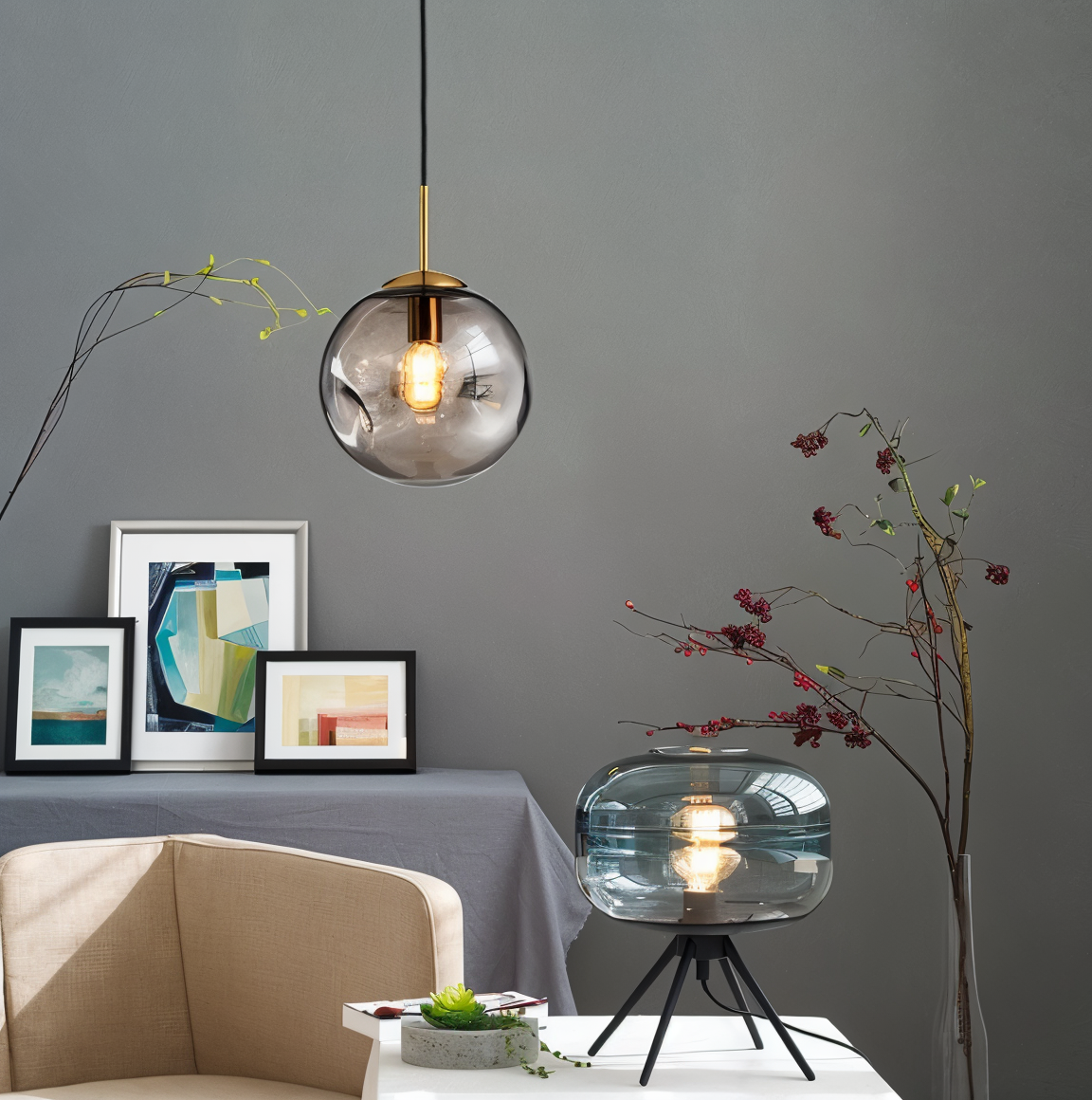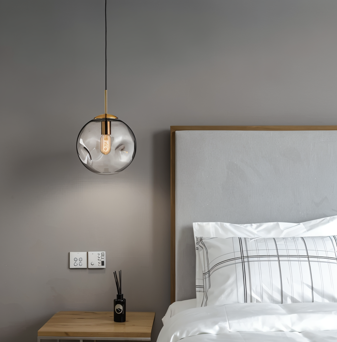 Chrodent pendel - rund champagne grå glas led pendel - vintage wabi sabi belysning