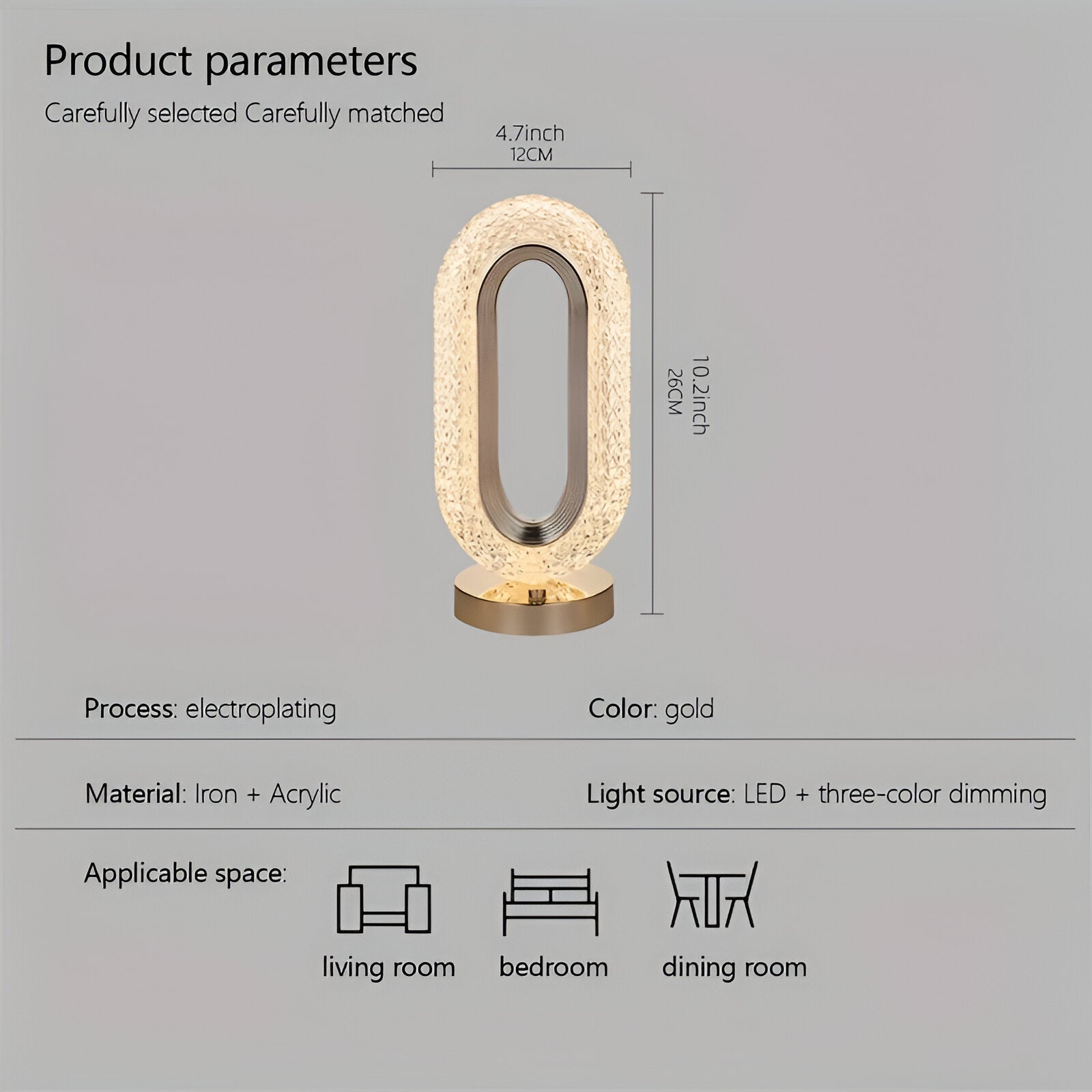 Krystalbordlampe udstråler luksus og elegance med sine funklende krystaller og ovale LED-design. Lampen er perfekt som sofistikeret blikfang og giver en stilfuld atmosfære i stuen, soveværelset eller på arbejdspladsen.