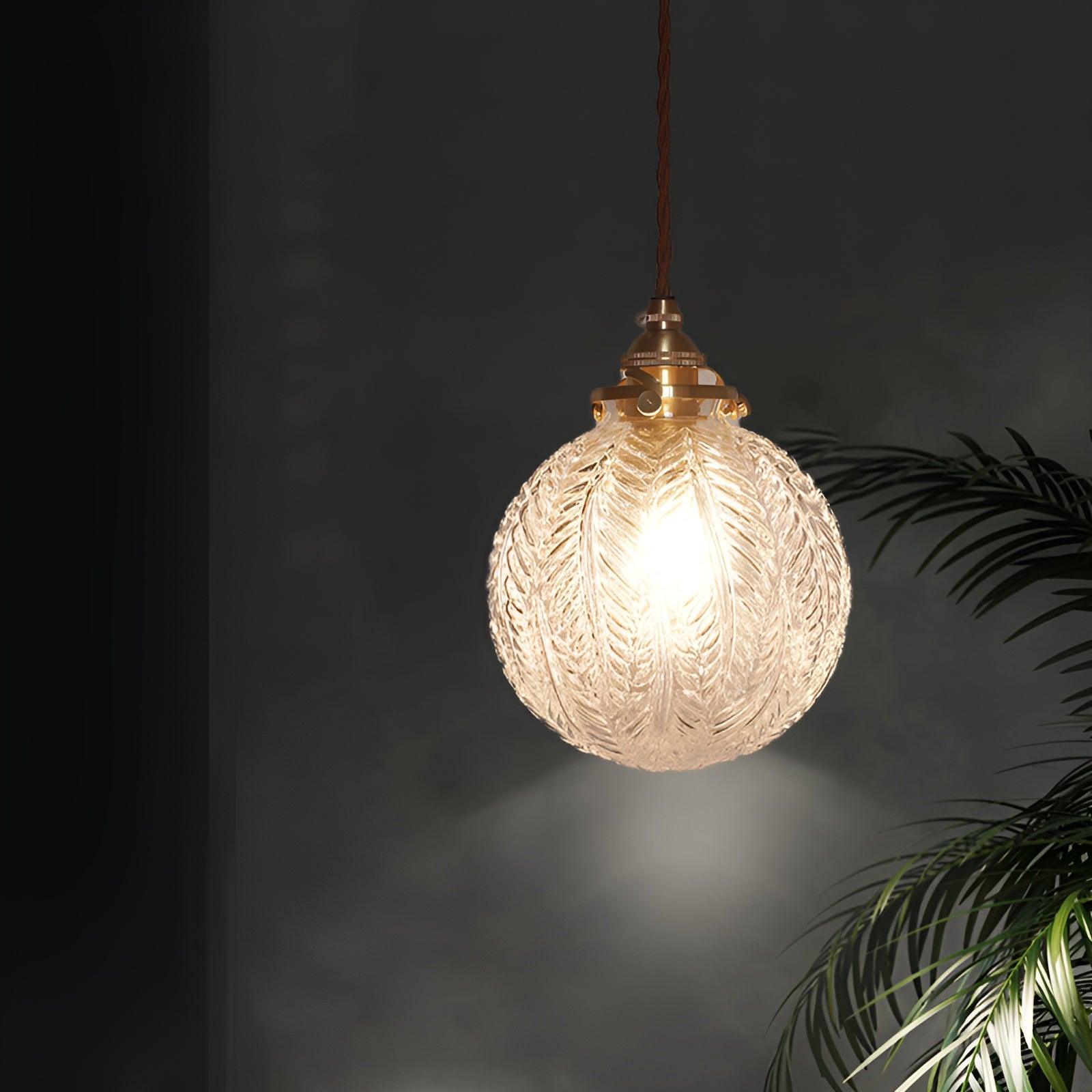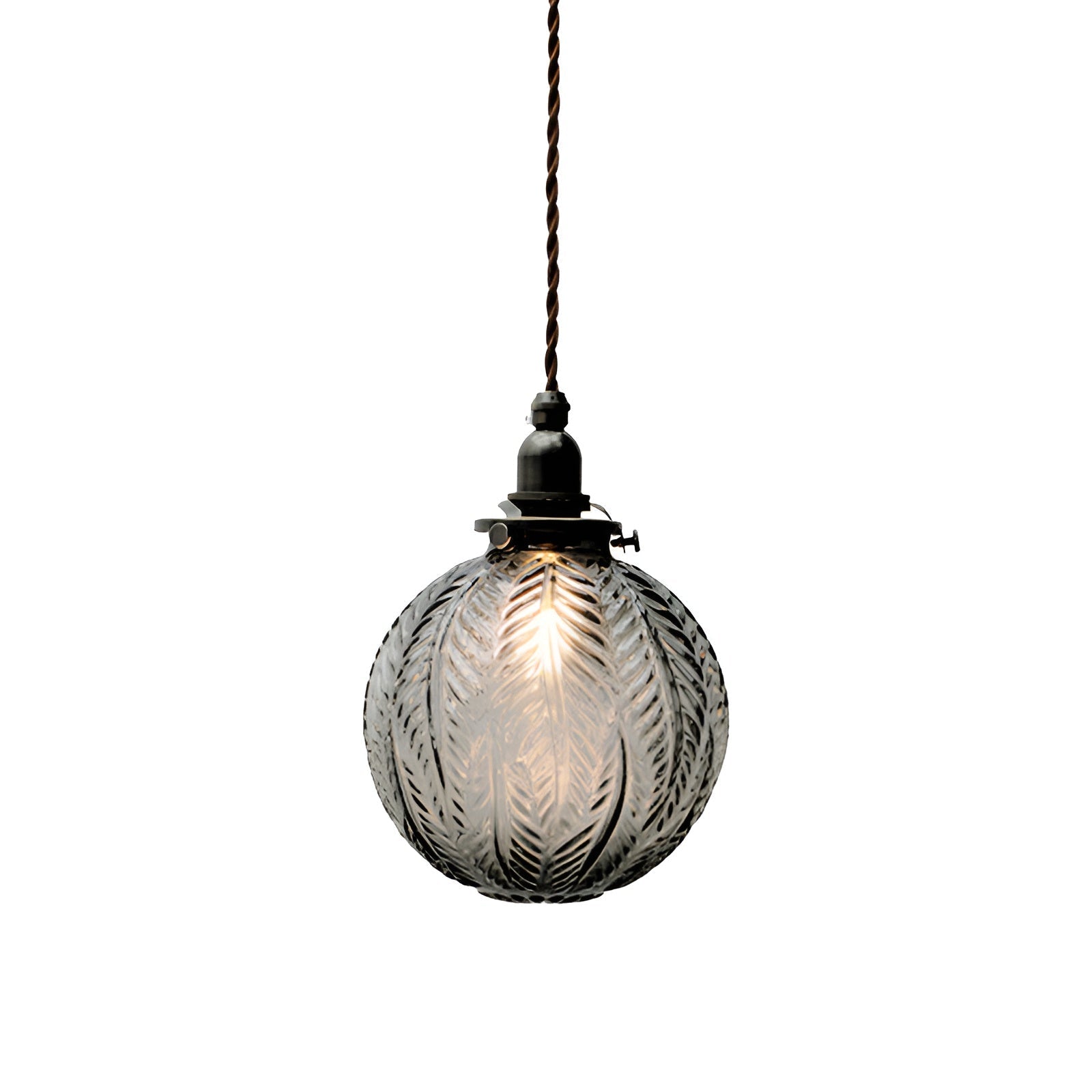 Feather glow - røgfarvet grå pendel i klart glas