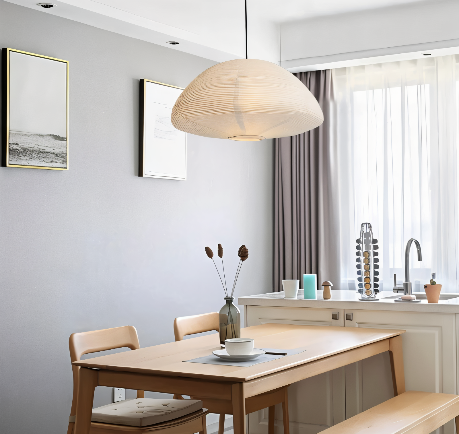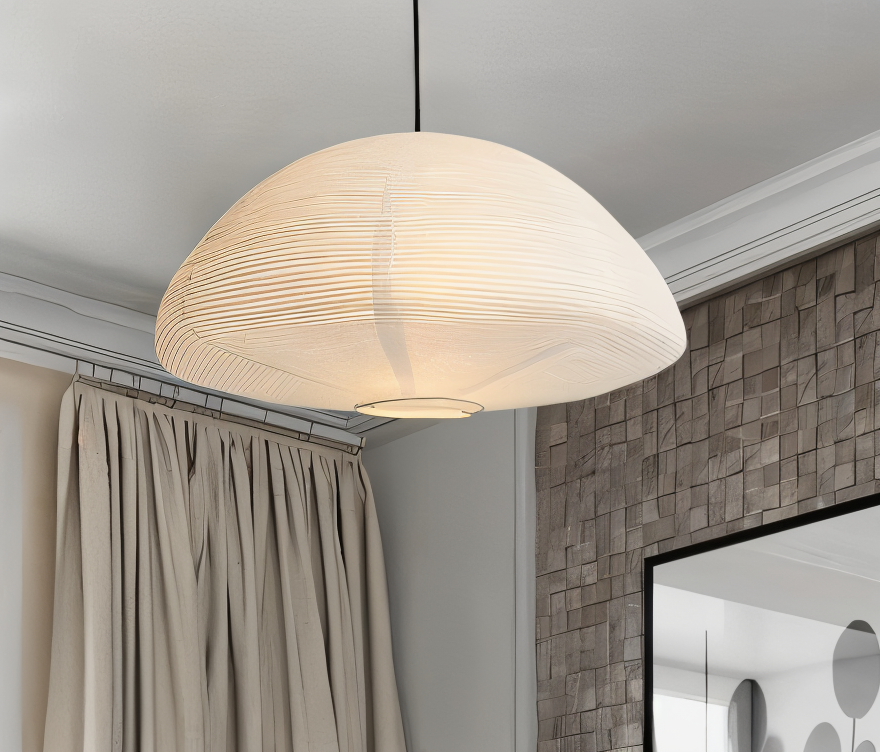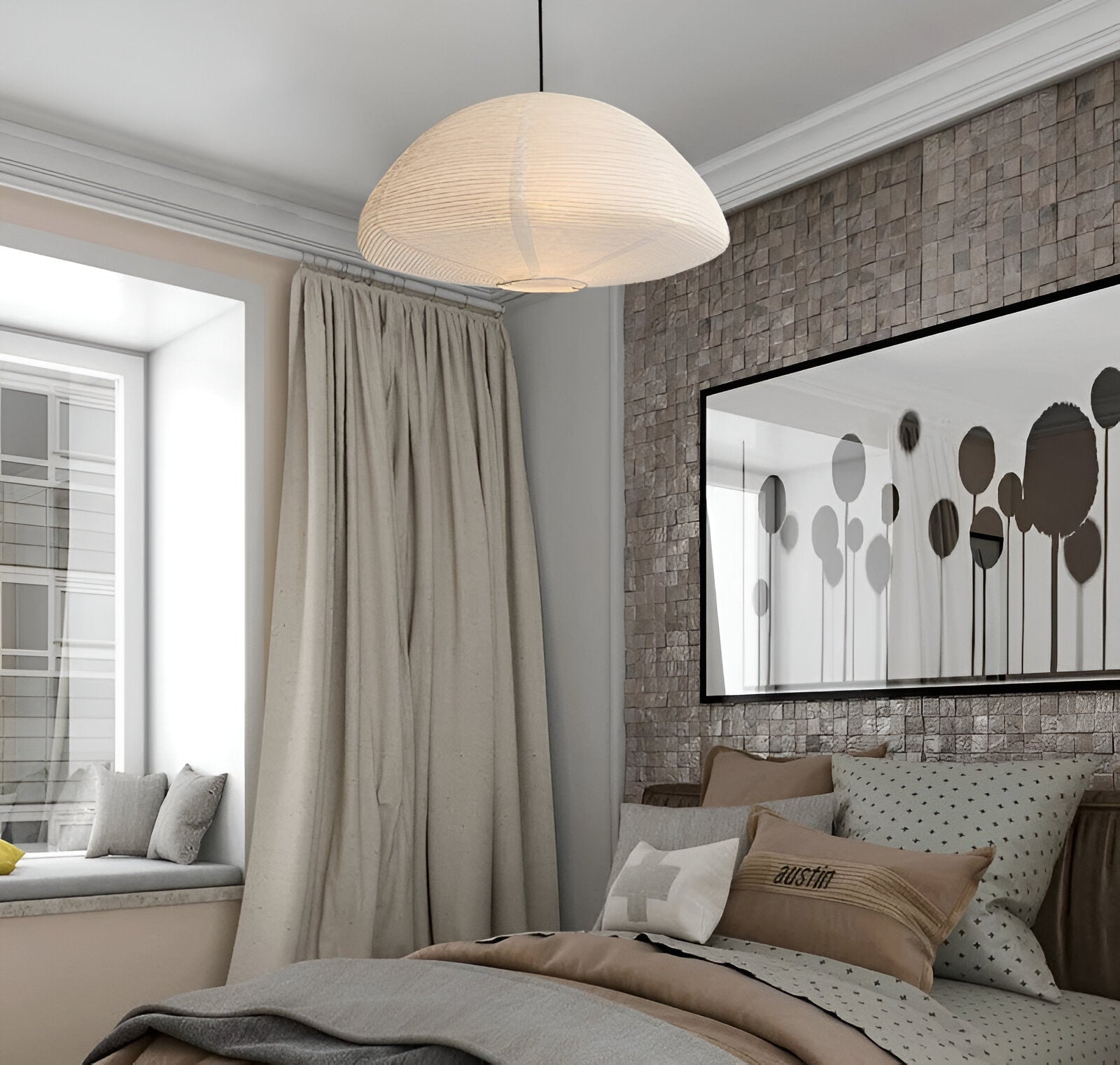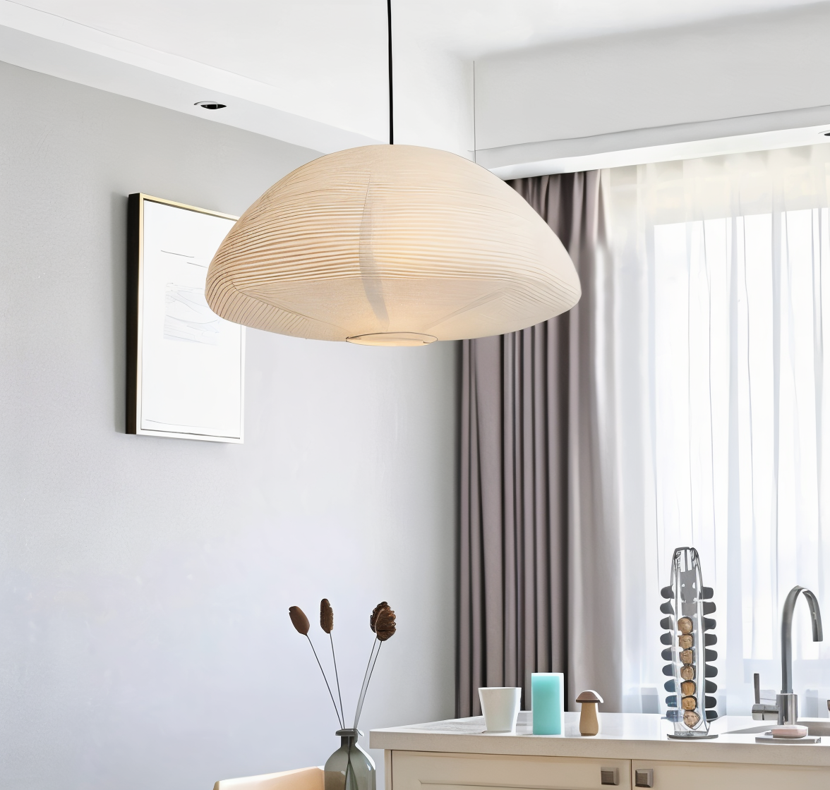 Kireilume-pendlen imponerer med sin japanske papirkuppel og minimalistiske design. Denne elegante pendel udsender et blødt, harmonisk lys og bringer tidløs æstetik til ethvert rum.