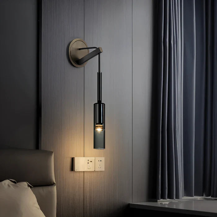 Krystalgrå væglampe - minimalistisk moderne væglampe med røgfarvet rør