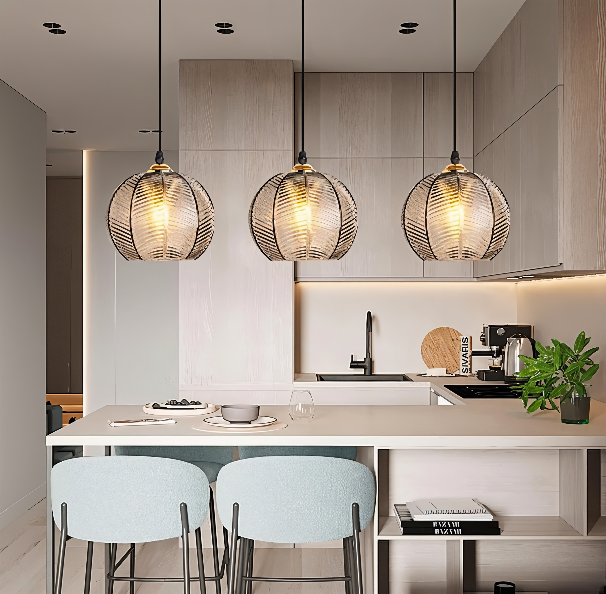 Leafyrib pendelleuchte - retro moderne gerippte glas hängelampe