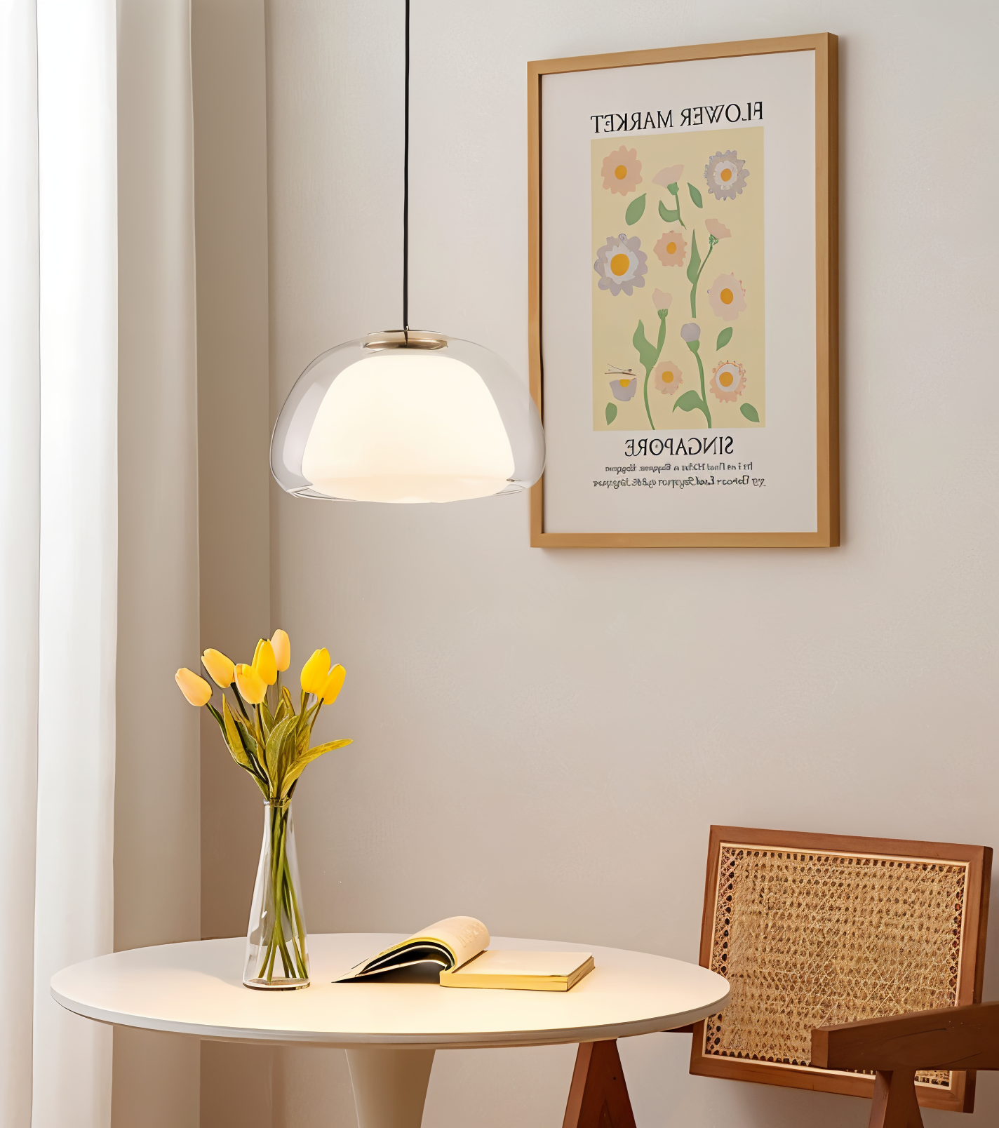 Lustrejell - moderne pendel i cremefarvet glas - gennemsigtig jelly led-hængelampe