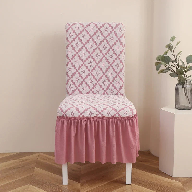 Fortykket elastisk jacquard stolebetræk med skørt for ekstra elegance