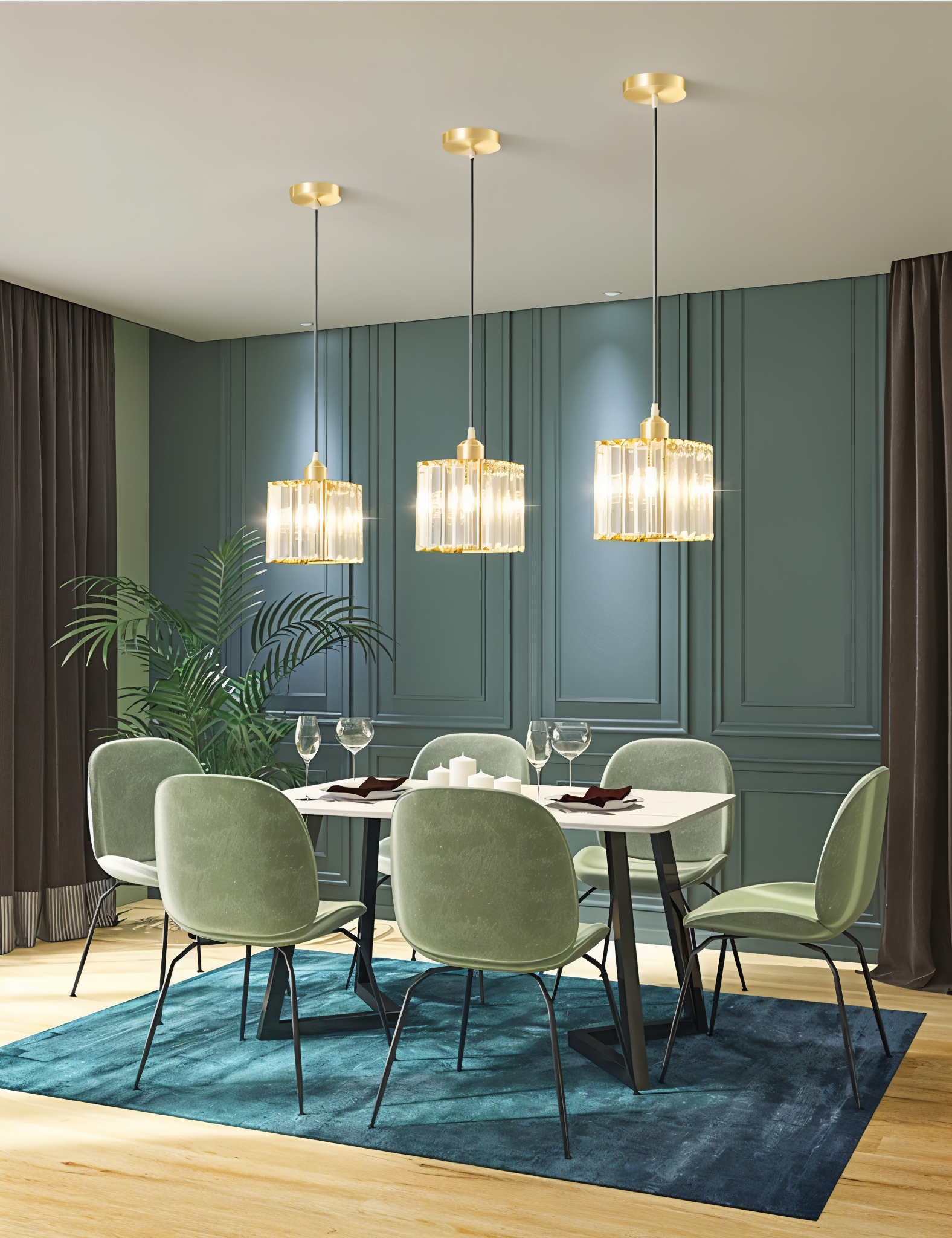 Magesticspark-pendlen imponerer med sit firkantede design i sort og guld og de hængende krystaldekorationer. Denne luksuriøse pendel kombinerer elegance og glamour og giver en imponerende belysning i moderne rum.