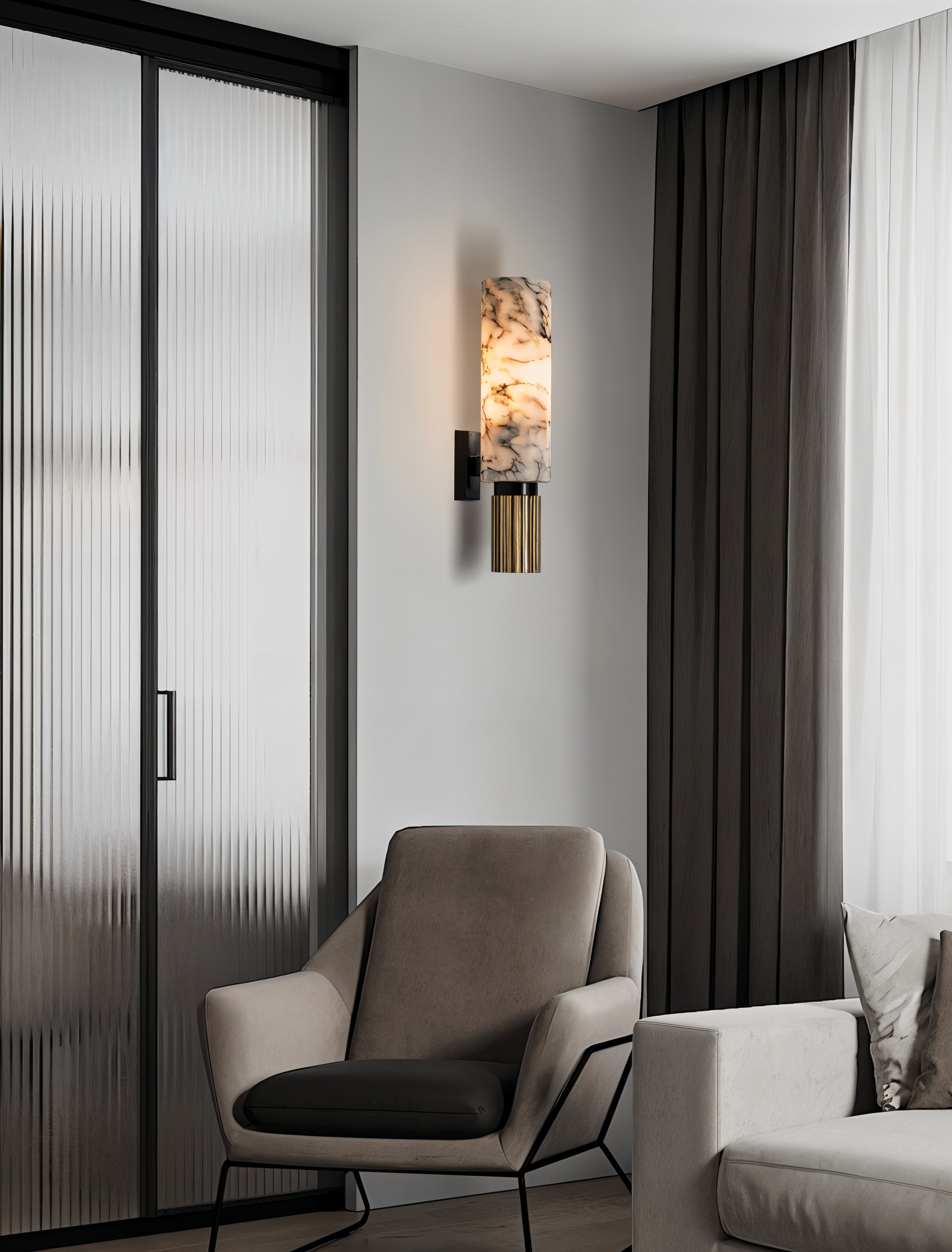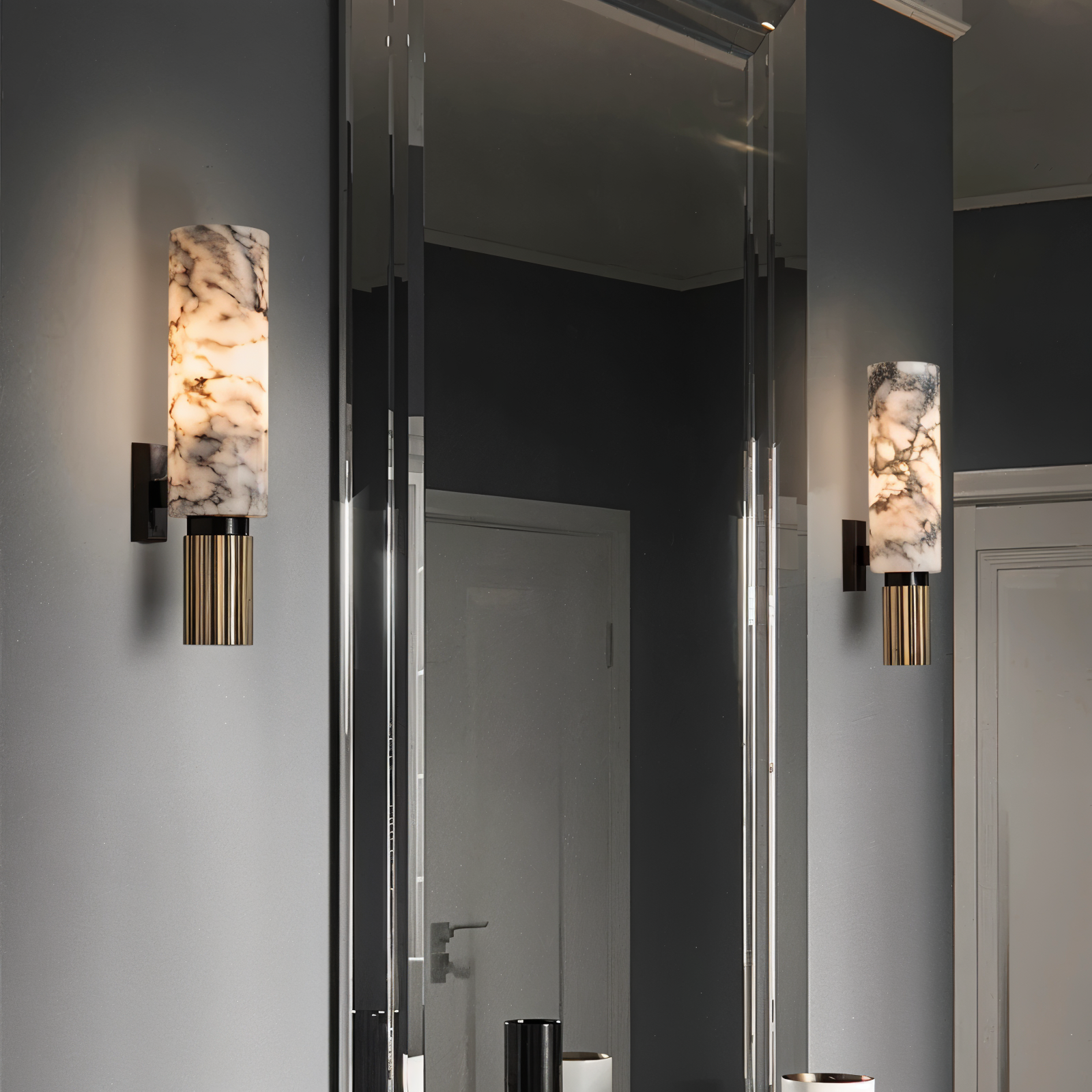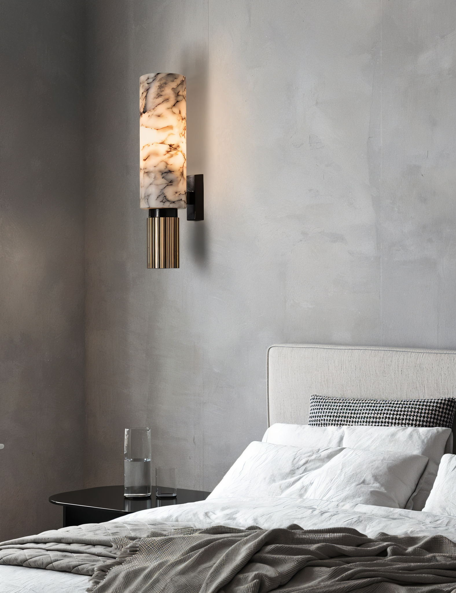 Marmor-væglampe - cylindrisk væglampe - naturlige marmor-væglamper led