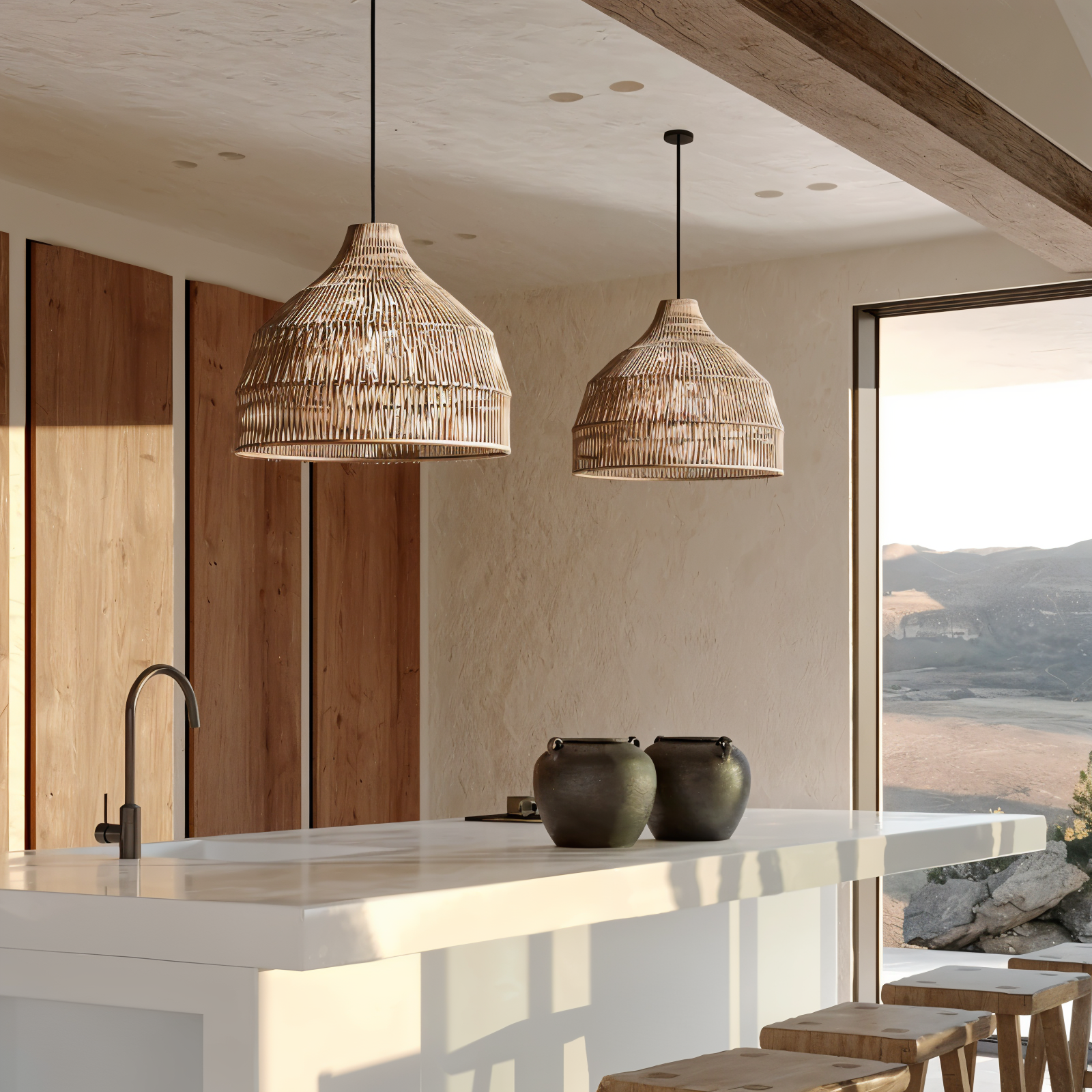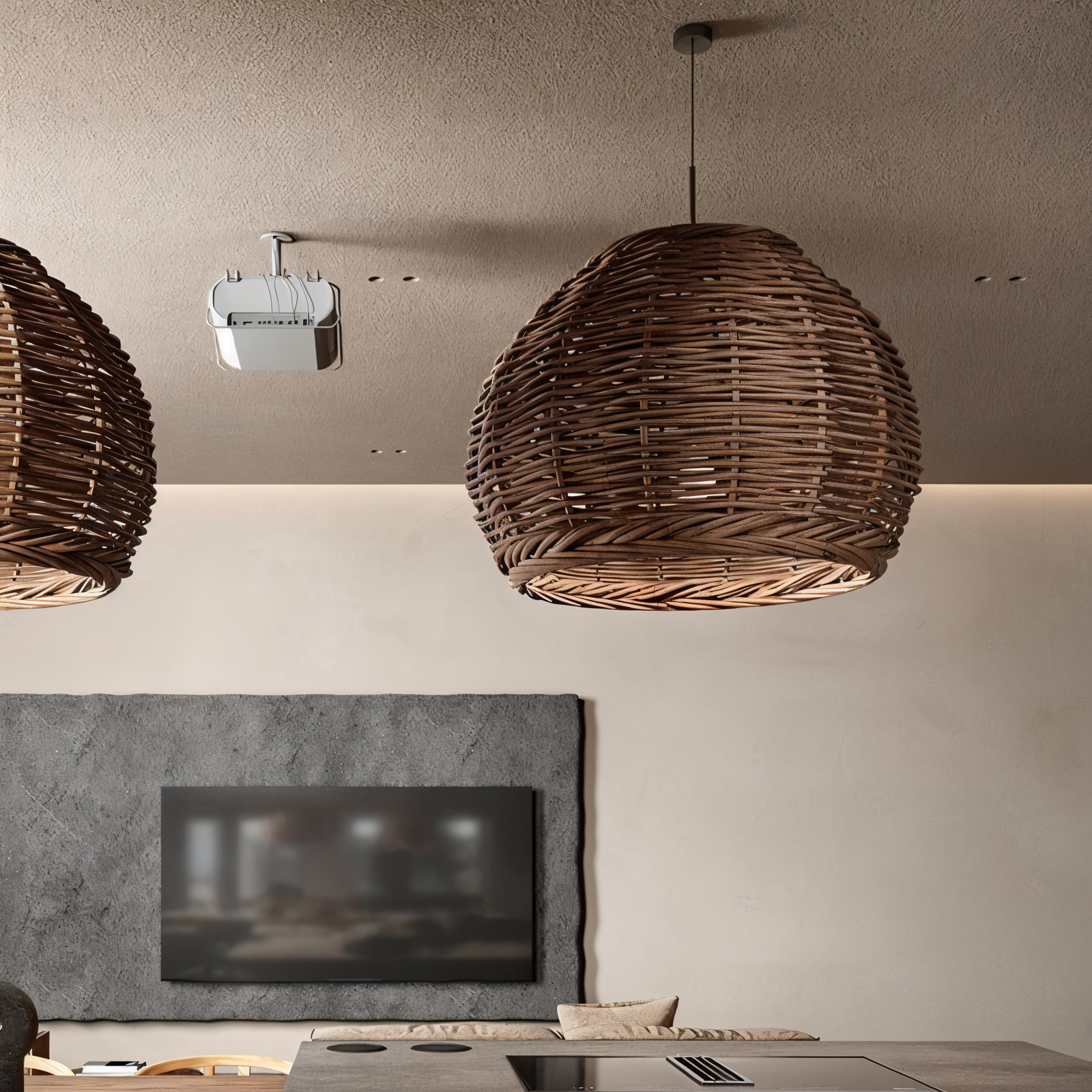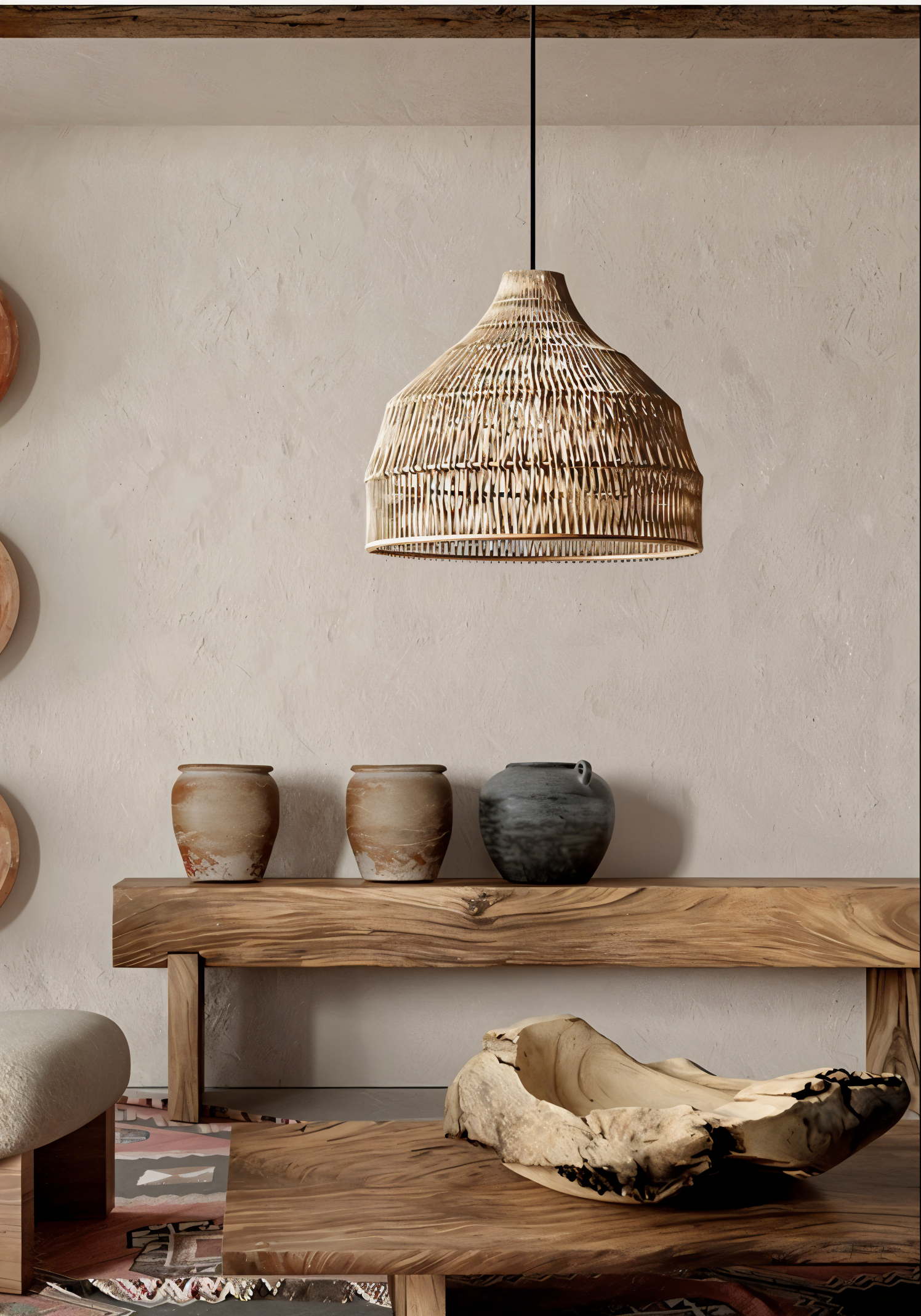 HatWicker-pendlen er en stilfuld konisk lampe lavet af brun-beige rattan. Med sit nedadrettede lys giver denne pendel en varm og stemningsfuld belysning, perfekt til spisestuer, opholdsrum eller hyggekroge.