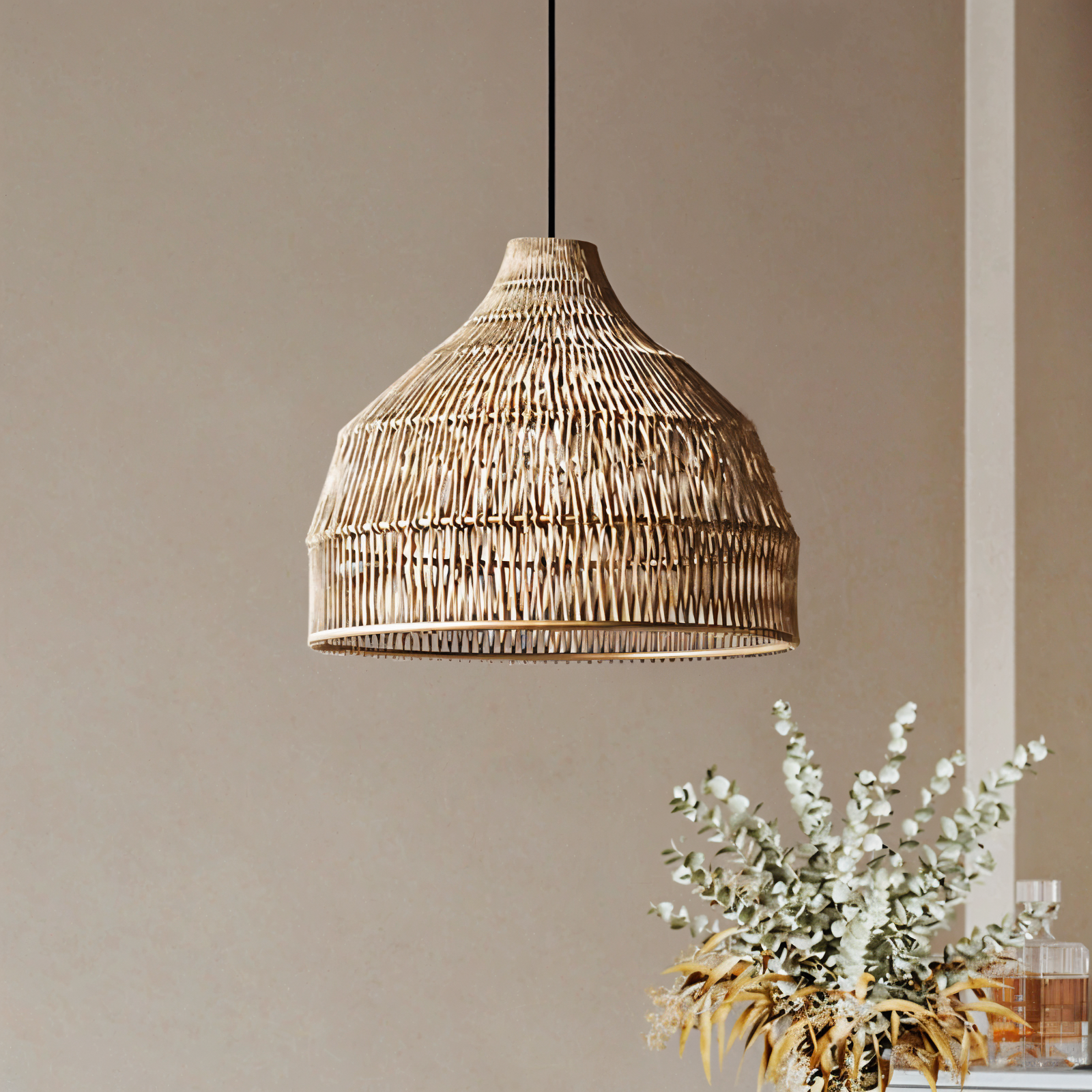 Hatwicker pendellampe - hængelampe i brun-beige konisk rattan - nedadrettet lys