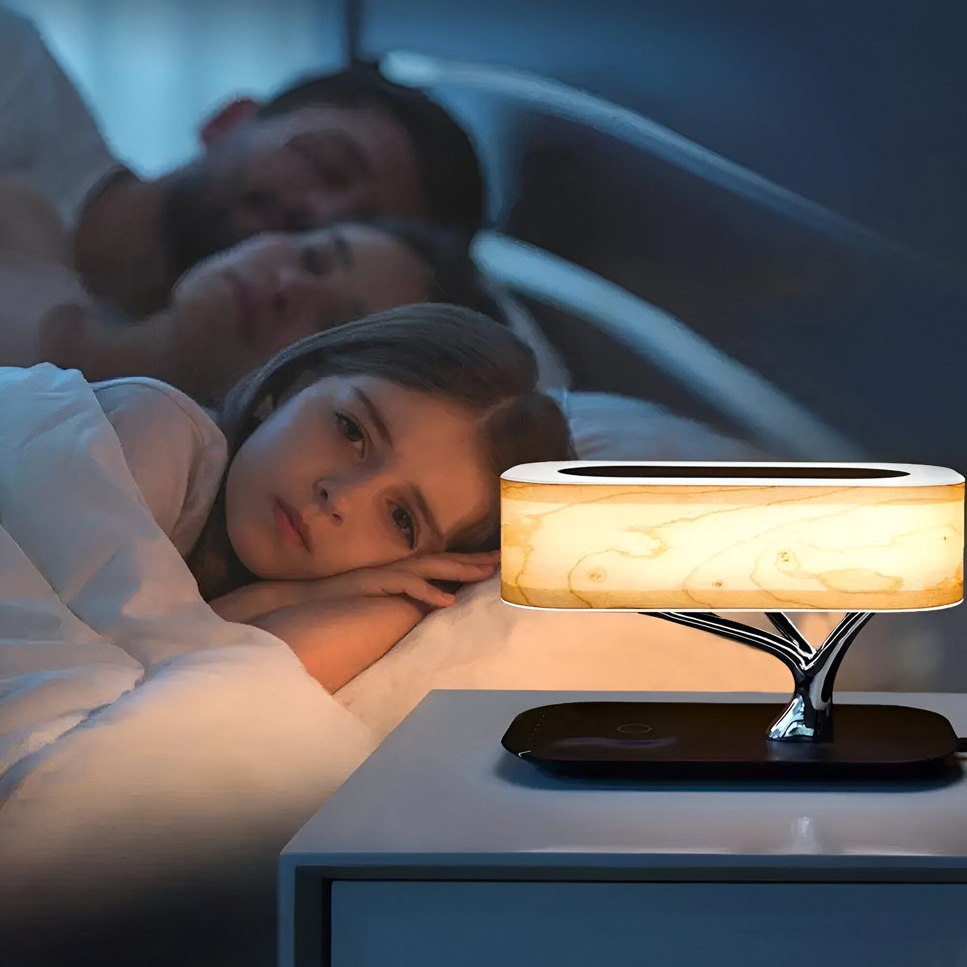 Naturetune bordlampe - multifunktionel sengelampe med bluetooth-højttaler og trådløs oplader