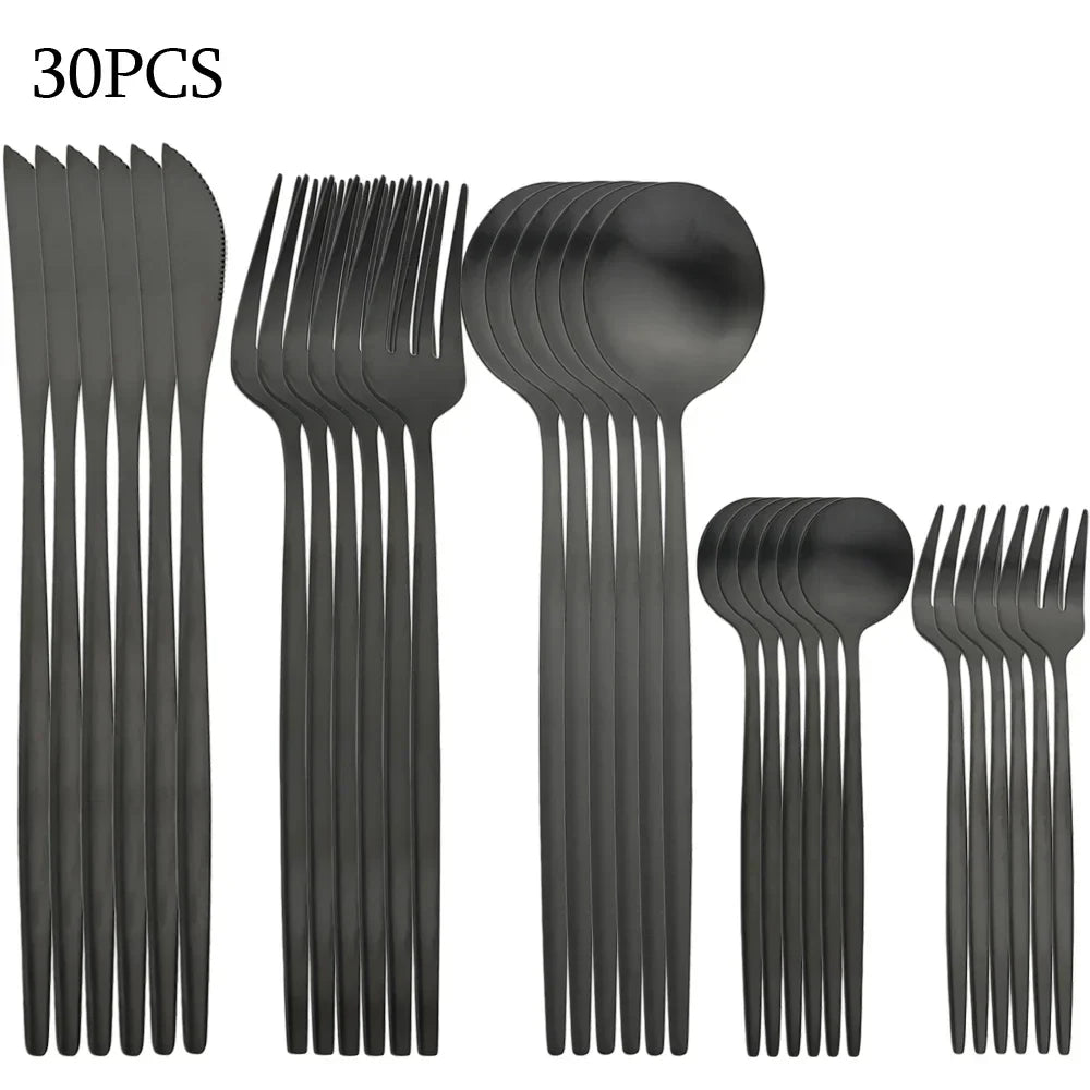 RefinedTable bestiksættet tilbyder en perfekt blanding af elegance og funktionalitet. Dette sæt er lavet af højkvalitets 304 rustfrit stål og garanterer holdbarhed og rustbestandighed, mens det tilføjer et luksuriøst touch til dit bord. Med 30 stykker dækker den alle dine behov for et komplet middagssæt.