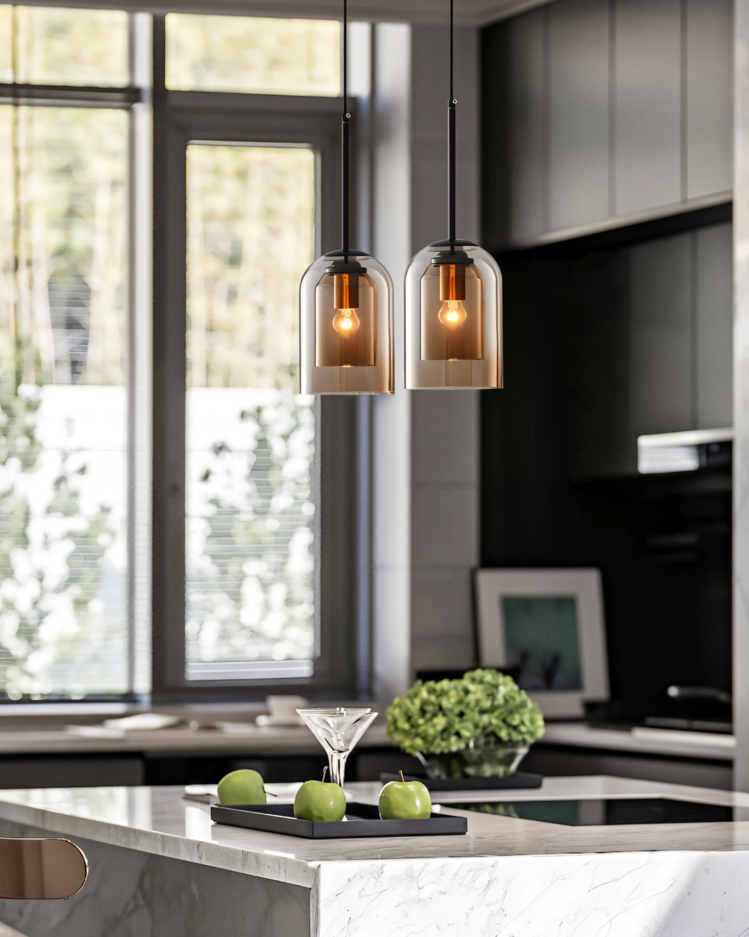 Stackglos pendel - hængelampe med dobbelt glasskærm - postmoderne belysning