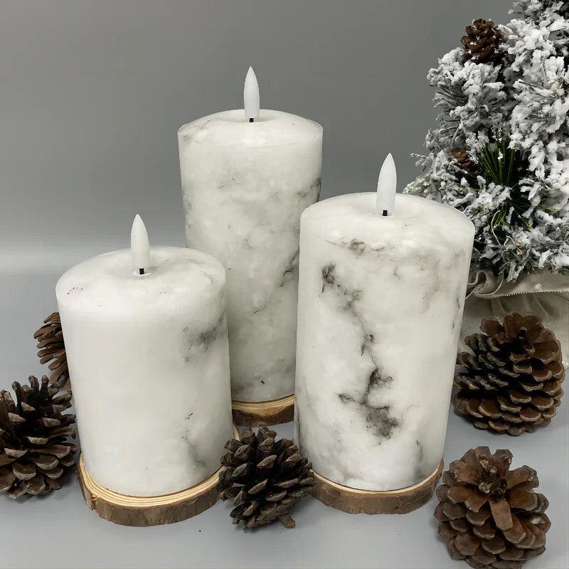 Stearinlys | 3er sæt LED marmor kirsebær lys