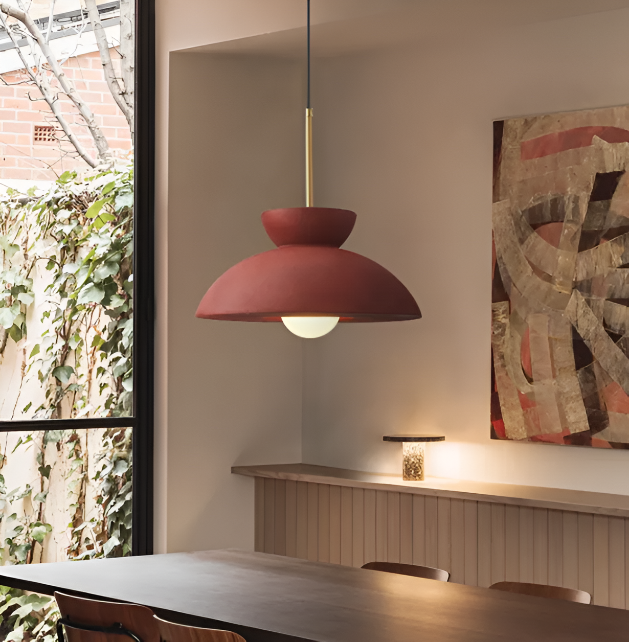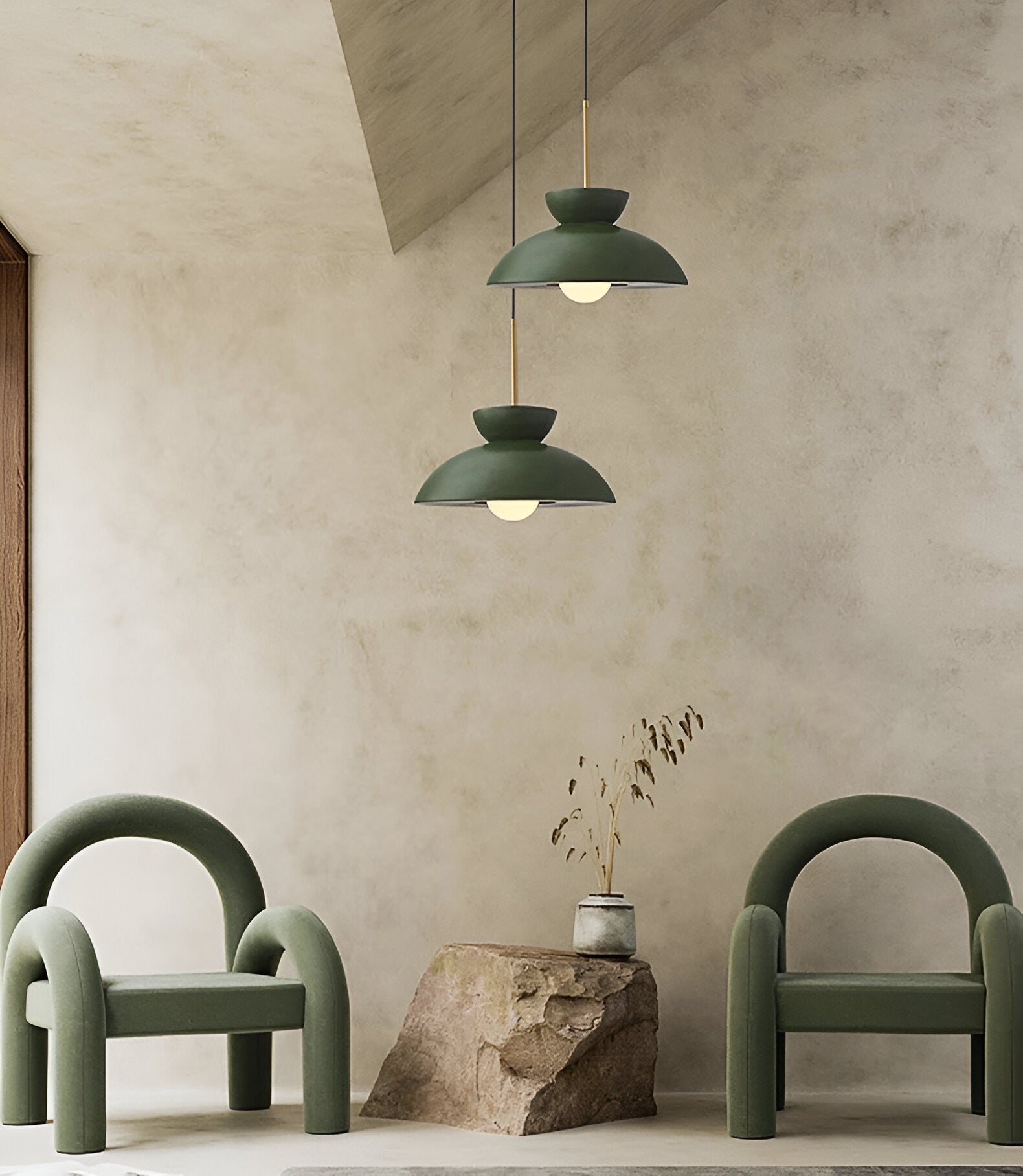 Wabi Sabi-pendlen kombinerer geometriske former med et minimalistisk resin-design. Denne LED-lampe udstråler en subtil, beroligende atmosfære og passer perfekt ind i interiører, der foretrækker enkelhed og Wabi Sabi-æstetik.